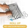 Easy to use: All you need to do is to seal the zipper, roll out the air from the zipper side to the bottom vent side and our travel roll up bags will stay compressed without any other equipment needed.